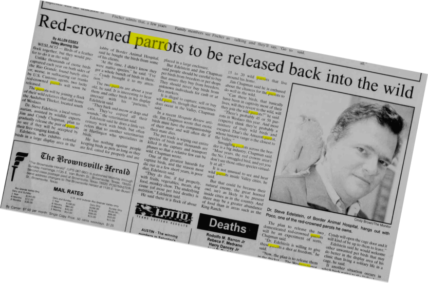 RED-CROWED PARROTS TO BE RELEASED BACK INTO THE WILD